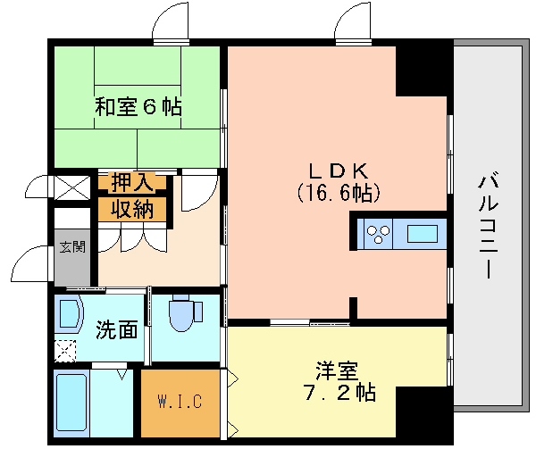 | 間取り | 2LDK (LDK 16.6帖、洋室 7.2帖、6帖) |